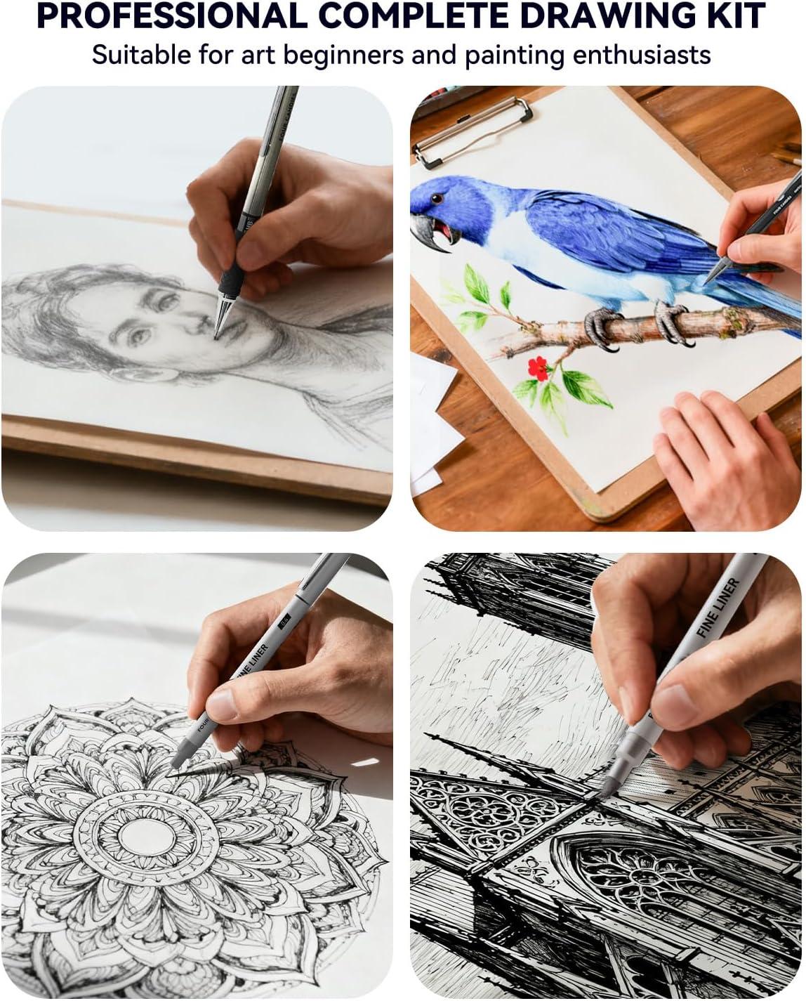 【Professional Canvas Bag & Elegant Gift Box】All drawing tools are neatly organized in the upgraded durable canvas bag, featuring compartment pockets for easy access and enhanced protection. With a compact zippered design and a carrying handle, it is lightweight and portable—ideal for carrying to studios, classrooms, or outdoor sketching trips. This art kit comes packaged in an exquisite gift box, tailored for professional artists, illustrators, architects, art enthusiasts, and art students. It serves as a perfect creative gift for Christmas, birthdays, graduations, and other special occasions.