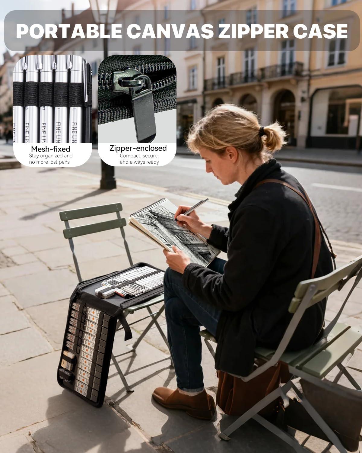 【10 Professional Fine Liners for Precision Detailing】This comprehensive sketching kit includes 10 fine-line drawing pens with tip sizes ranging from 0.05mm to 2.0mm,a core selection of drawing supplies. These smudge-proof and waterproof pens are perfect for outlining, fine detailing, shading, and illustration. They deliver sharp, clean lines ideal for professional artists and designers—making them suitable for professional sketching, drawing ,comic art, concept design, and more.