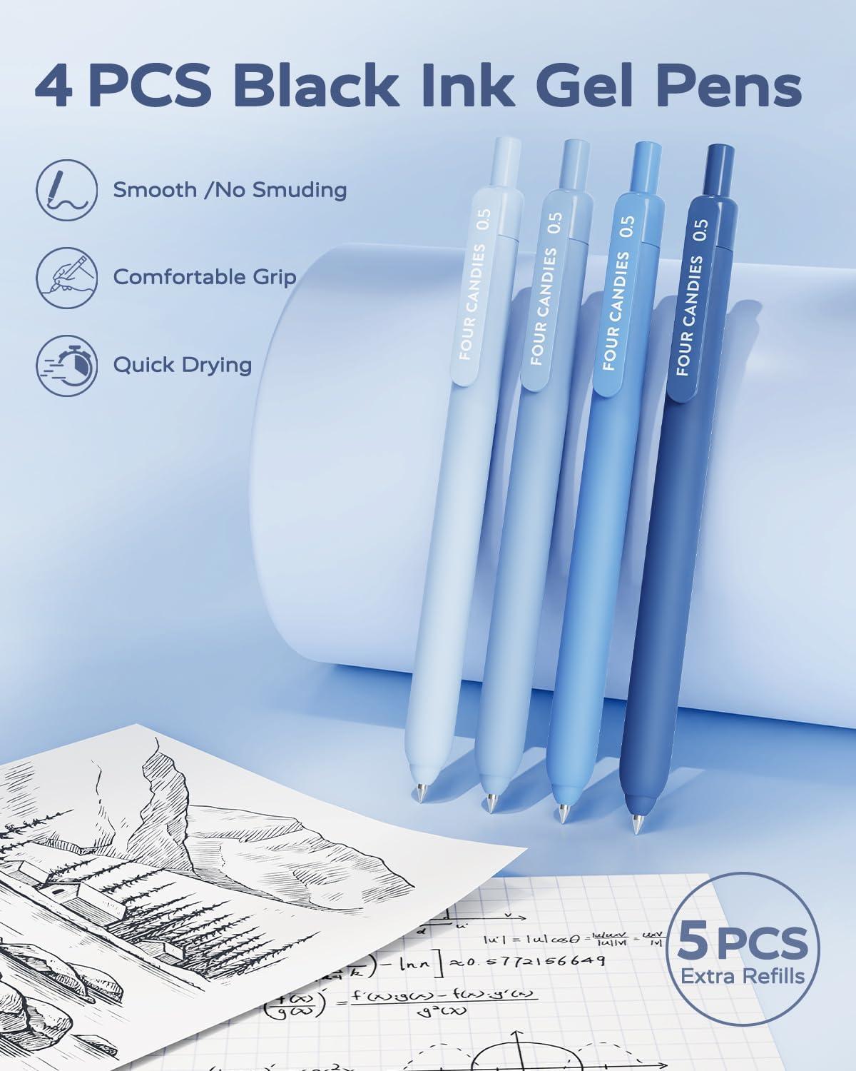 SMOOTH WRITING EXPERIENCE: Enjoy smooth writing with 0.5 mm fine point pens with gradient colorful ABS barrels for a comfortable grip. These note taking pens feature a retractable tip prevents smearing and bleeding with 5 refills. It also includes 2 pcs highlighters with high transparency that do not obscure the font, making annotations clear and distinct. Its comfortable grip fits your hand properly and can help you adopt the ideal holding position to reduce writing pressure
