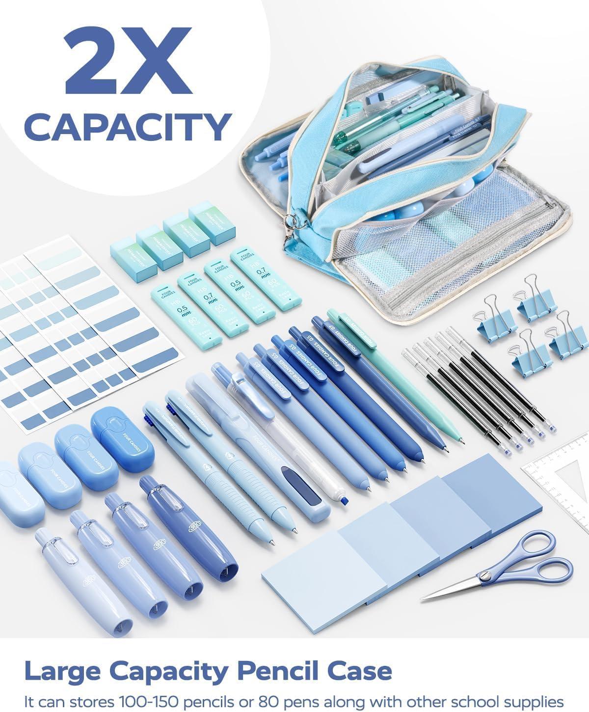 2000ml Large Capacity Pencil Pouch: This pen case upgraded size 9.45″L × 4.33″H × 2.95″W. It has a 2X larger capacity compared to others. It can hold 100+ pens or 150+ pencils, along with rulers , etc. Ideal for organized multi-item carry while maintaining a slim, backpack-friendly profile