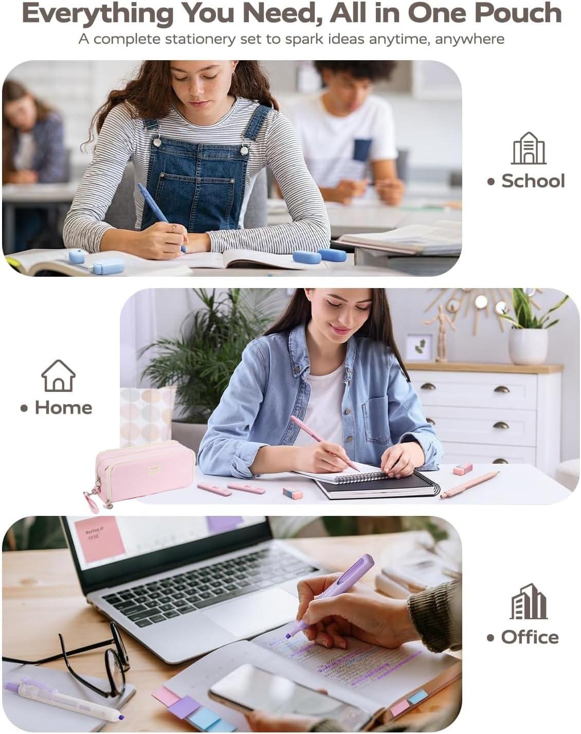 Multifunctional Main Compartment: The center layer of this pencil bag includes a mesh pocket for quick access and 3 slip pockets for small items. A flexible divider creates 2 zones to improve organization. The wide-opening design allows quick visibility and easy access to all contents