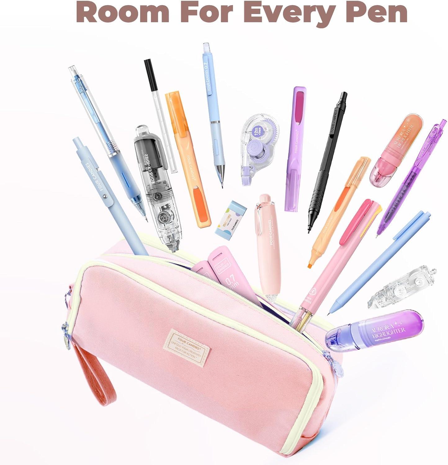 Four Candies Blue Pencil Case 3 Compartment Pouch, Large Pencil Case for School, Girls, Teen Boys, Women, Dark Blue, Removable Handle & Zipper, Cute Pencil Bag for Office, College(Pink)