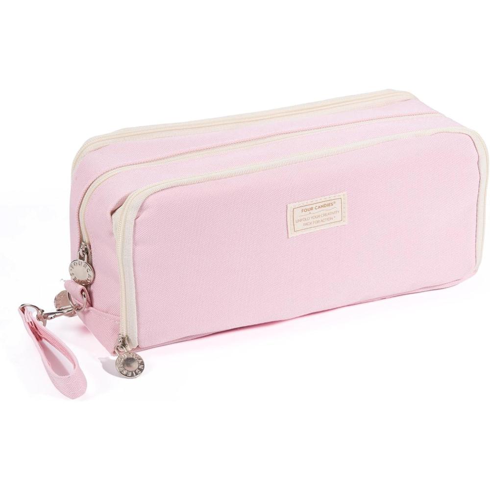 imageFour Candies Blue Pencil Case 3 Compartment Pouch Large Pencil Case for School Girls Teen Boys Women Dark Blue Removable Handle ampamp Zipper Cute Pencil Bag for Office CollegePink